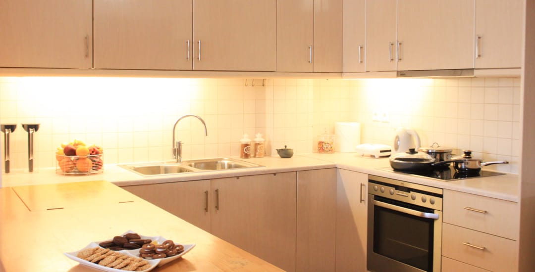 The stylish apartment is approximately 35m² and can comfortably accommodate up to 2 guests. It is finely furnished and composed of a large and bright bedding area with a comfortable double bed, a dining area with a table and two chairs and a side fully-equipped kitchen with all electricity devices, where you can prepare your own dishes. It includes high speed Wi-Fi internet, a flat screen TV, a closet and a desk. There is also a balcony overlooking the high street of town. Behind the kitchen, there is a stylish modern bathroom featured a walk-in shower, complimented by bath-care products. You can also park on the street next to the building. There is a big bakery in the ground floor of the building and the apartment is only a short walk to all major points, like bank, supermarkets, all day bars, coffee shops, pharmacies etc.